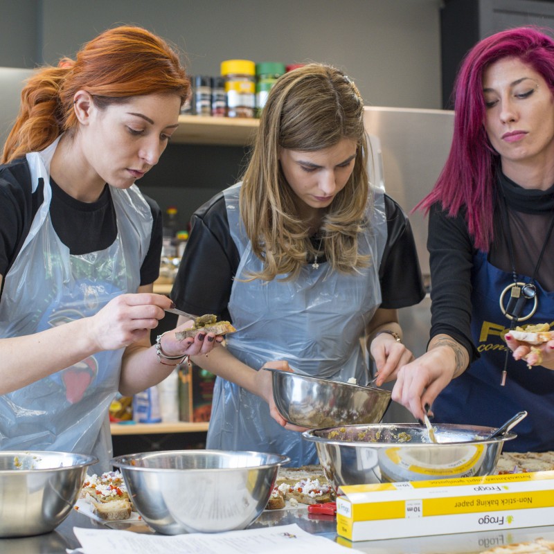 Денят ни започна в хотел Метрополитън, където заедно обсъдихме изминалата година и представихме плановете и идеите за настоящата 2020 г. Част от представянето ни беше посветено на календара със събития, обучения, кампании, които ще бъдат акцент през следващите месеци. След това всички заедно се пренесохме в една по-различна, артистична и колоритна обстановка, в която се забавлявахме и готвихме заедно. Екипът на Food Connection беше подготвил предизвикателства, с които трябваше да се справим екипно.